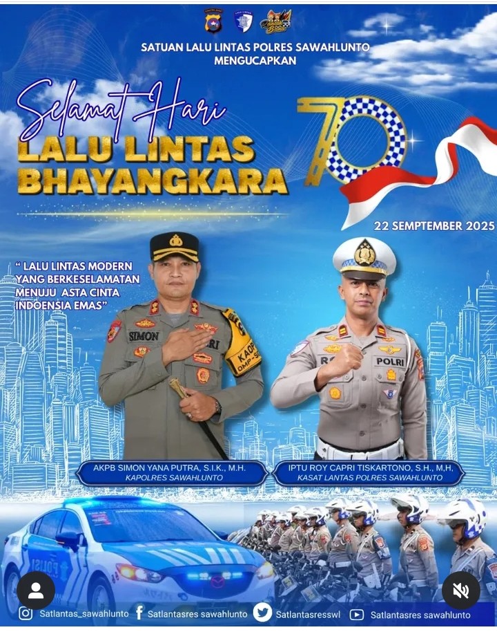 Dengan semangat Hari Lalu Lintas Bhayangkara ke-70 ini, Polres Sawahlunto berharap masyarakat semakin sadar bahwa keselamatan lalu lintas adalah pondasi menuju Indonesia Emas 2045.