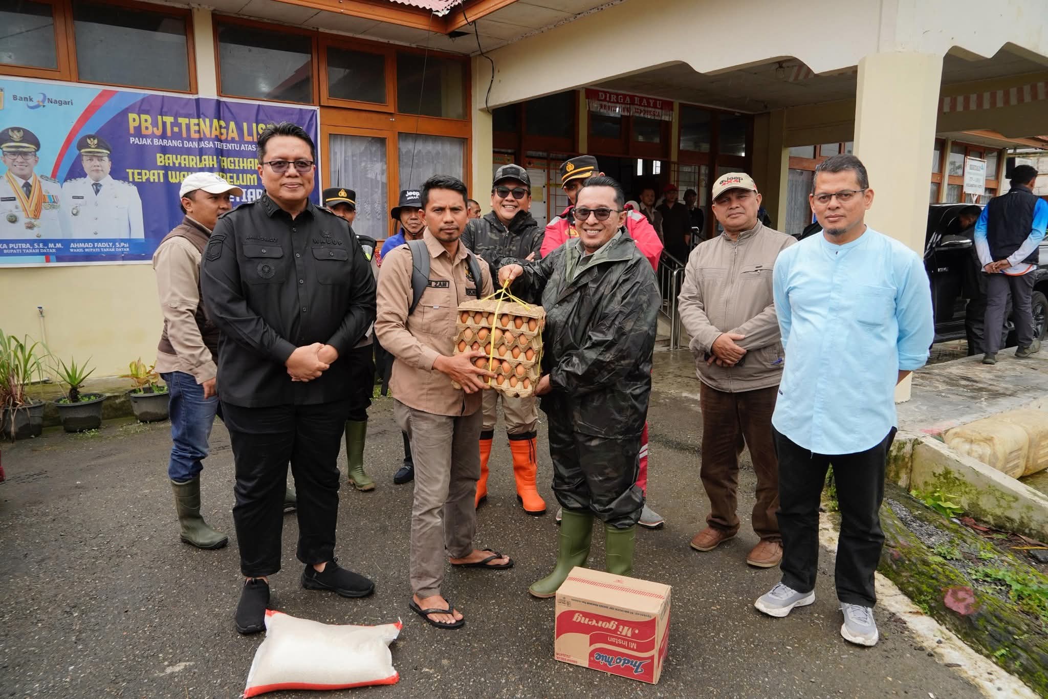 Kemudian, Bupati bersama Wabup dan rombongan selepas shalat Jum’at menyerahkan bantuan sembako bagi korban di Nagari Singgalang dan Nagari Tambangan Kecamatan X Koto.