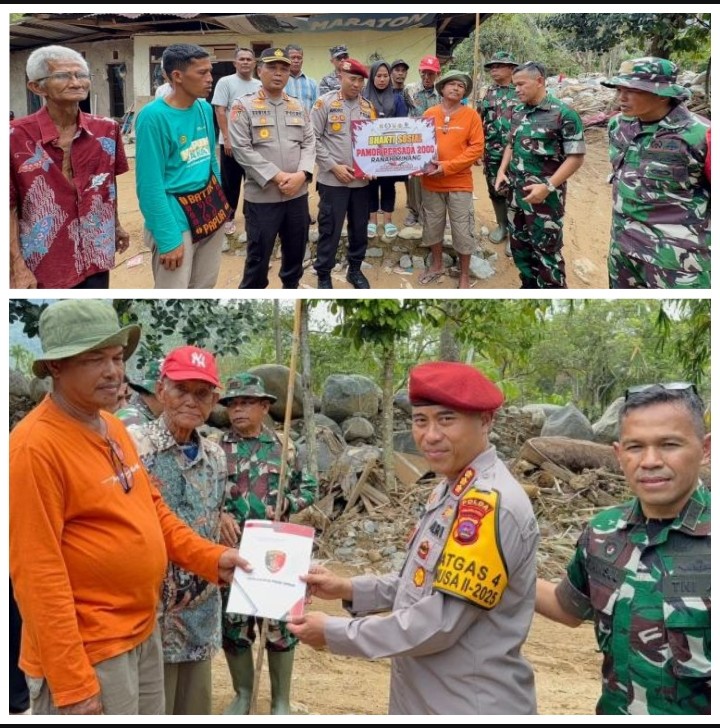 Di saat masyarakat dilanda banjir dan galodo, kebersamaan lintas matra menjadi bukti bahwa aparat negara hadir sebagai bagian dari rakyat, menguatkan, membantu, dan berjalan bersama dalam proses pemulihan.