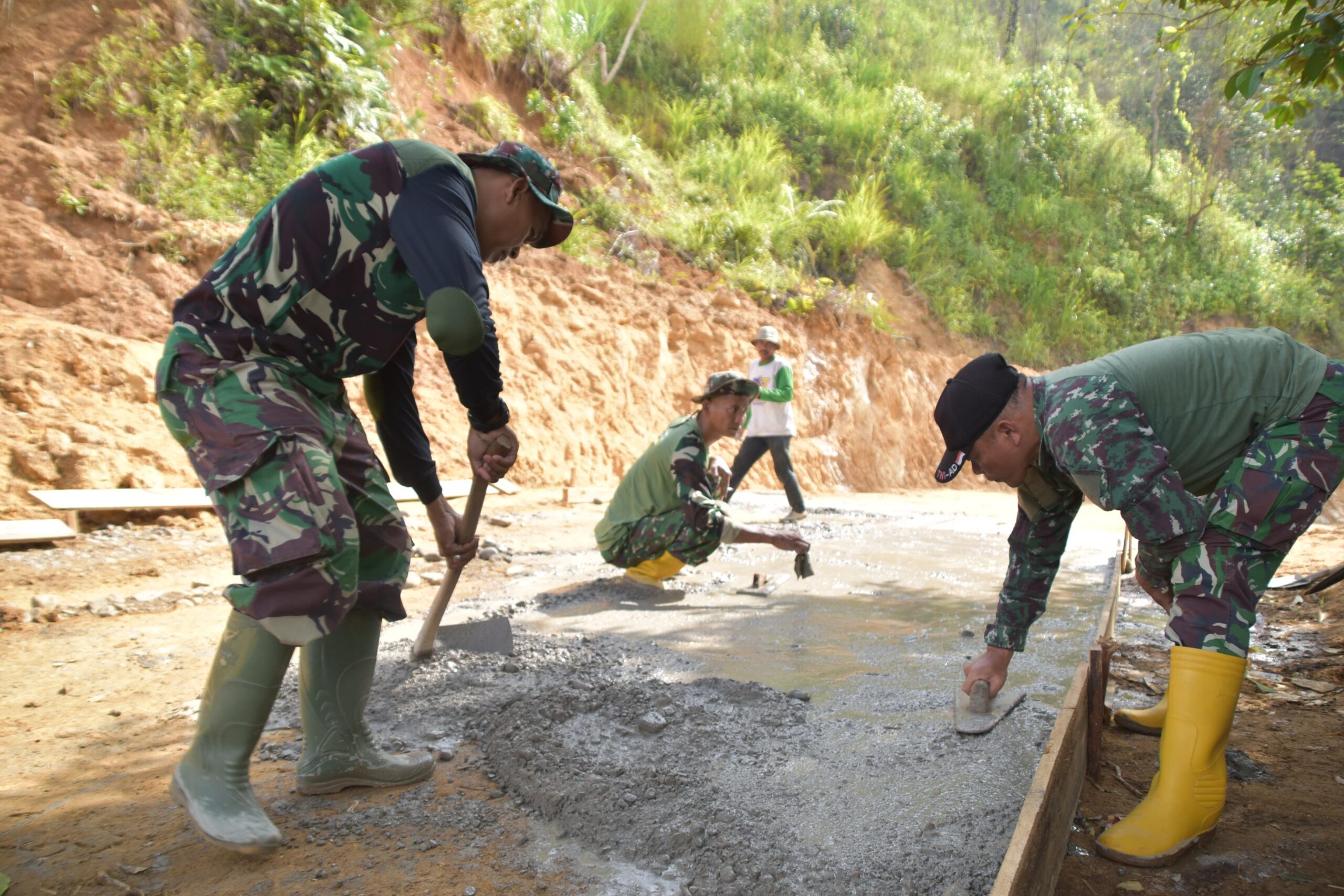 Anggota Satgas TMMD bersama masyarakat setempat bahu membahu melaksanakan pengecoran jalan tambahan yang menjadi bagian dari sasaran fisik program TMMD Ke-127. Dengan semangat gotong royong, proses pengecoran dilakukan secara intensif agar pekerjaan dapat selesai tepat waktu sesuai target yang telah direncanakan.