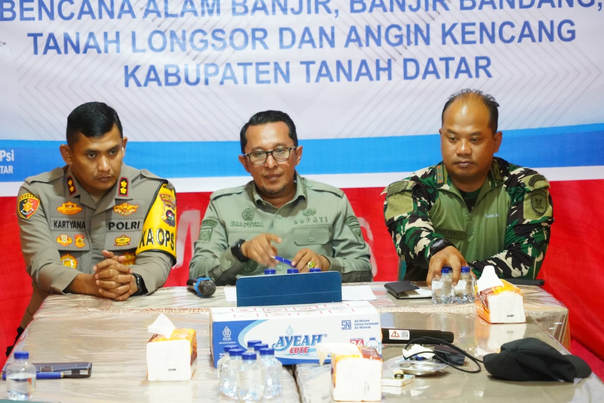 Tanah Datar, Startingjounal.com-Bupati Tanah Datar Eka Putra SE.MM pimpin rapat evaluasi tanggap bencana yang sedang berjalan, Kamis (4/12) malam di posko utama bantuan, nagari Batu Taba kecamatan Batipuh Selatan.