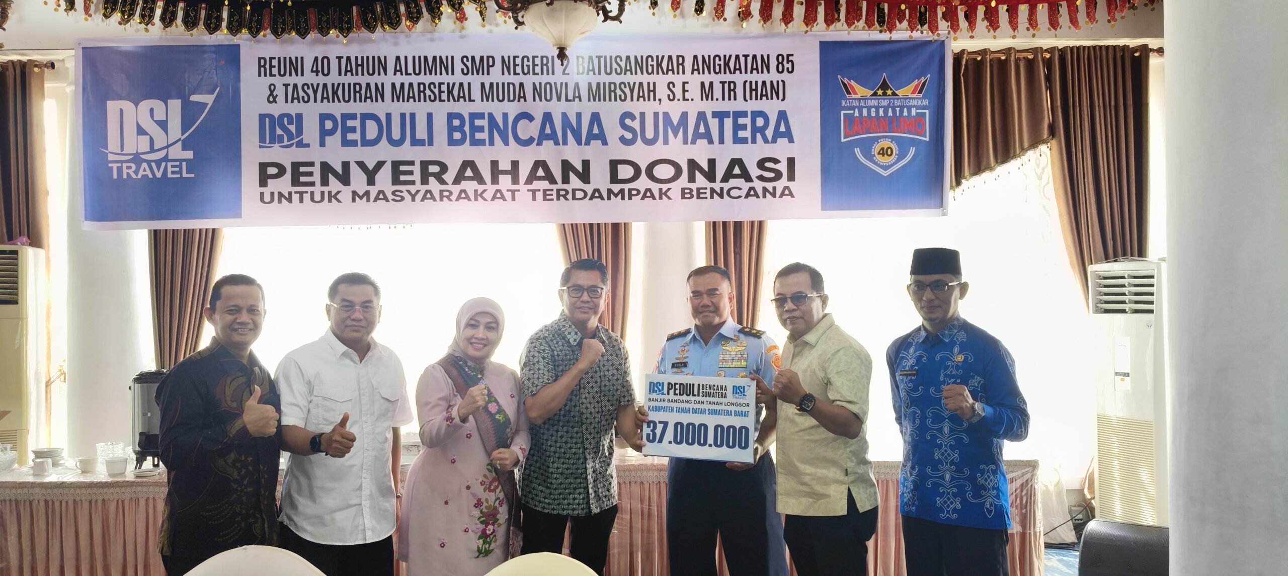 Doni Usman, owner dari DSL Travel menyampaikan bahwa selain melaksanakan reuni akbar alumni SMP Negeri 2 Batusangkar, DSL Travel juga memberikan bantuan donasi untuk masyarakat terdampak galodo.