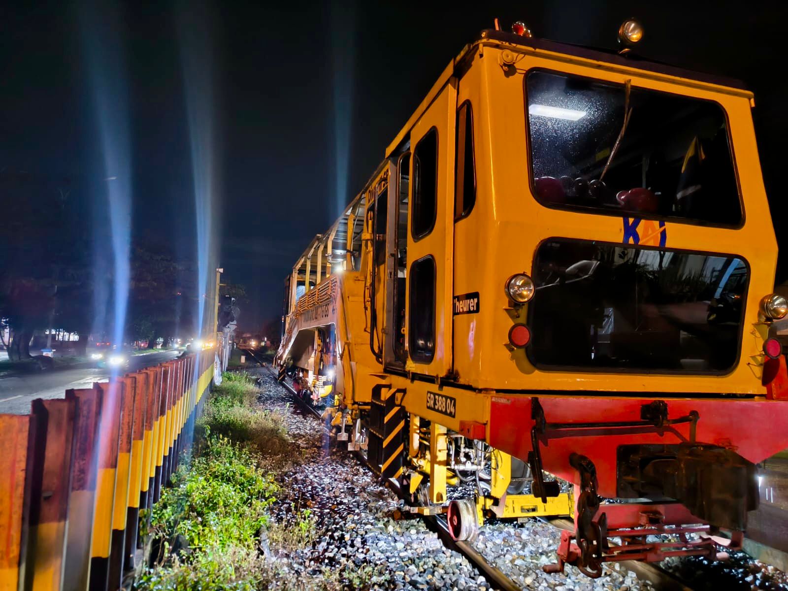 Tidak hanya mengandalkan pemeriksaan manual, Divre II Sumbar juga mengoperasikan Kereta Perawatan Jalan Rel (KPJR), yang menjadi tulang punggung dalam memastikan kualitas geometri jalur tetap optimal. Sarana ini digunakan untuk melakukan lifting, lining, dan tamping agar rel selalu berada pada posisi dan elevasi yang aman.