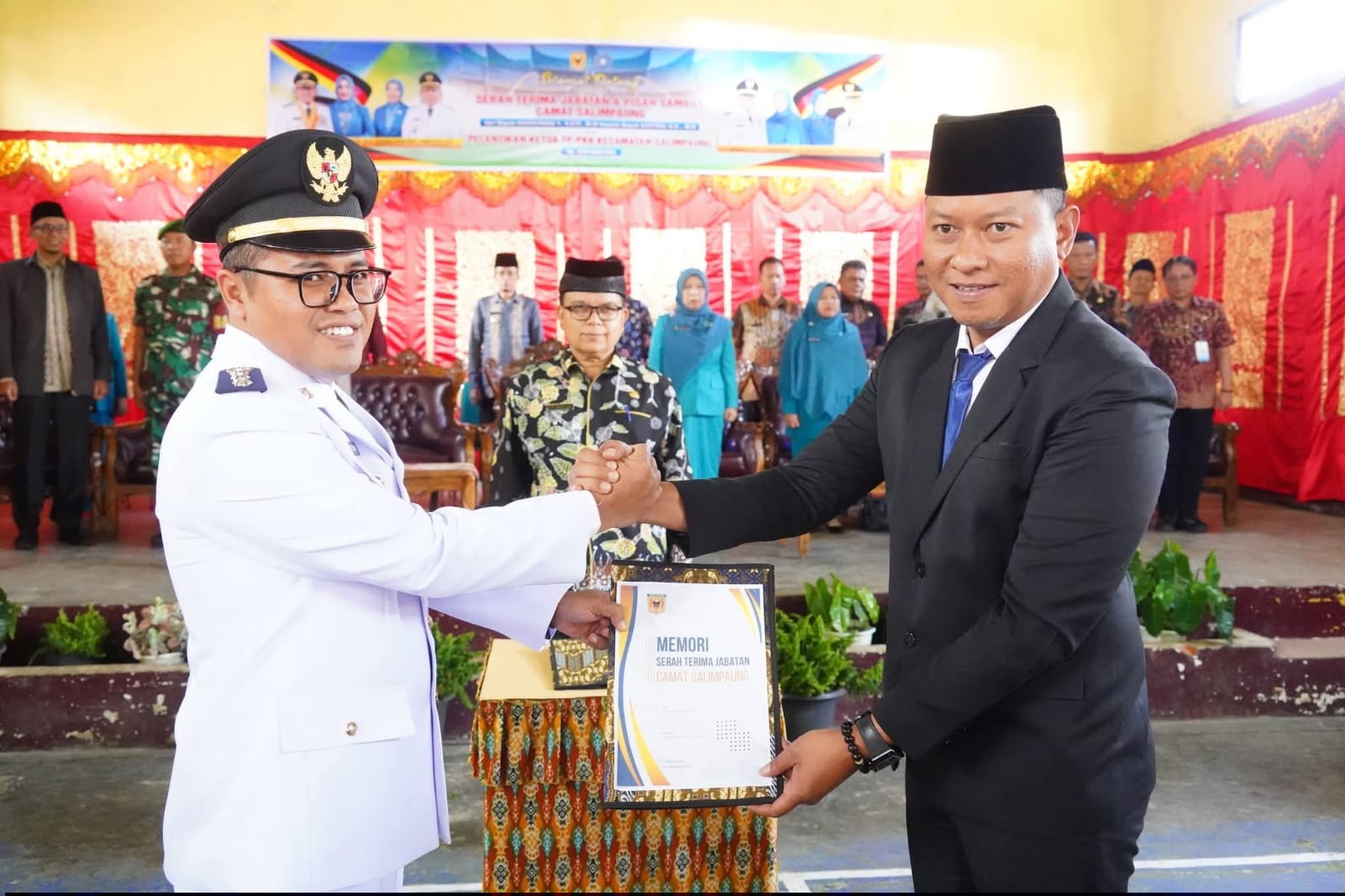 Sementara itu terkait serah terima jabatan camat yang disaksikan Bupati Tanah Datar diwakili Asisten Administrasi Umum Setda Tanah Datar Riswandi, S.Pd, M.Pd dalam sambutan menyampaikan ucapan selamat kepada camat Salimpaung yang baru Kartoni, SH, MH dan ucapan terima kasih kepada camat lama Khairunnas, Y, S.STP, MM dan sdr. Andry, SE selaku Plt.Camat Salimpaung.