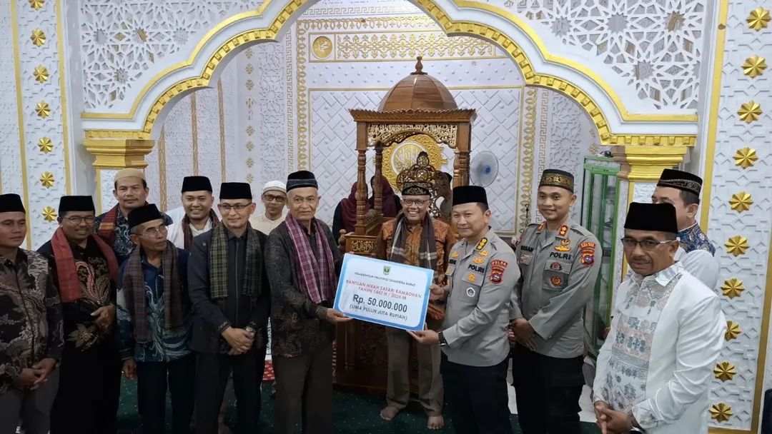 Dalam kesempatan tersebut, Ketua Tim Safari Ramadhan, Kombes Pol Dessy Ismail, S.I.K., secara simbolis menyerahkan bantuan berupa 40 mushaf Al-Qur’an dan bantuan dana sebesar Rp50 juta kepada pengurus Masjid Syuhada. Bantuan tersebut diharapkan dapat mendukung kegiatan keagamaan dan operasional masjid, serta meningkatkan semangat ibadah masyarakat selama bulan suci Ramadhan.